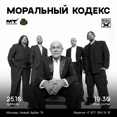 25 октября в "MT music bar" концерт группы Моральный Кодекс.