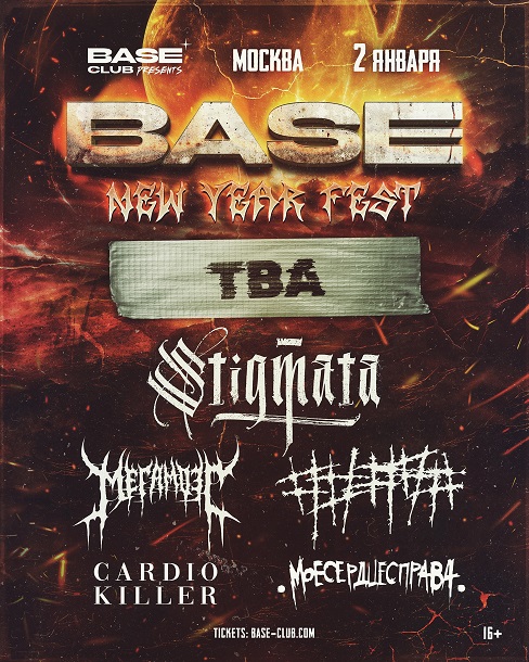 BASE продолжает традицию ярких и громких новогодних фестивалей – 2 января в Москве прогремит NEW YEAR FEST при участии групп STIGMATA, «Мегамозг», ##### (5diez), .моесердцесправа. и Cardio Killer!