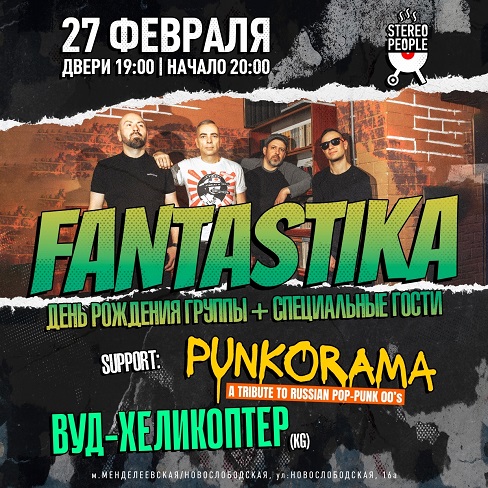 27 февраля приглашаем всех вас в клуб STEREO PEOPLE на знаковую ПАНК-ВЕЧЕРИНКУ, которая перенесет любителей панк-рока на четверть века назад.