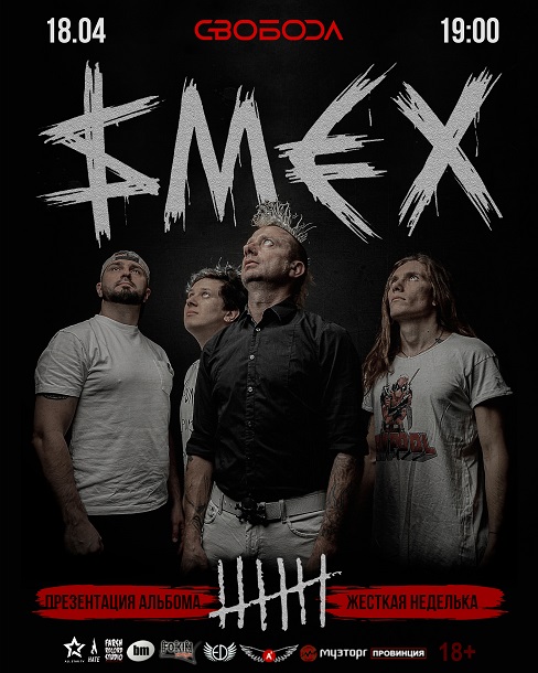 Группировочка СМЕХ презентует новый альбом "Жёсткая Неделька" - выстрелы от головной боли, объединенные в одну золотую обойму. Помимо этого, знатно пошумим, отмечая 27-летие группы под самые главные хиты и нестареющие шлягеры. До встречи 18 апреля в московском клубе Свобода!